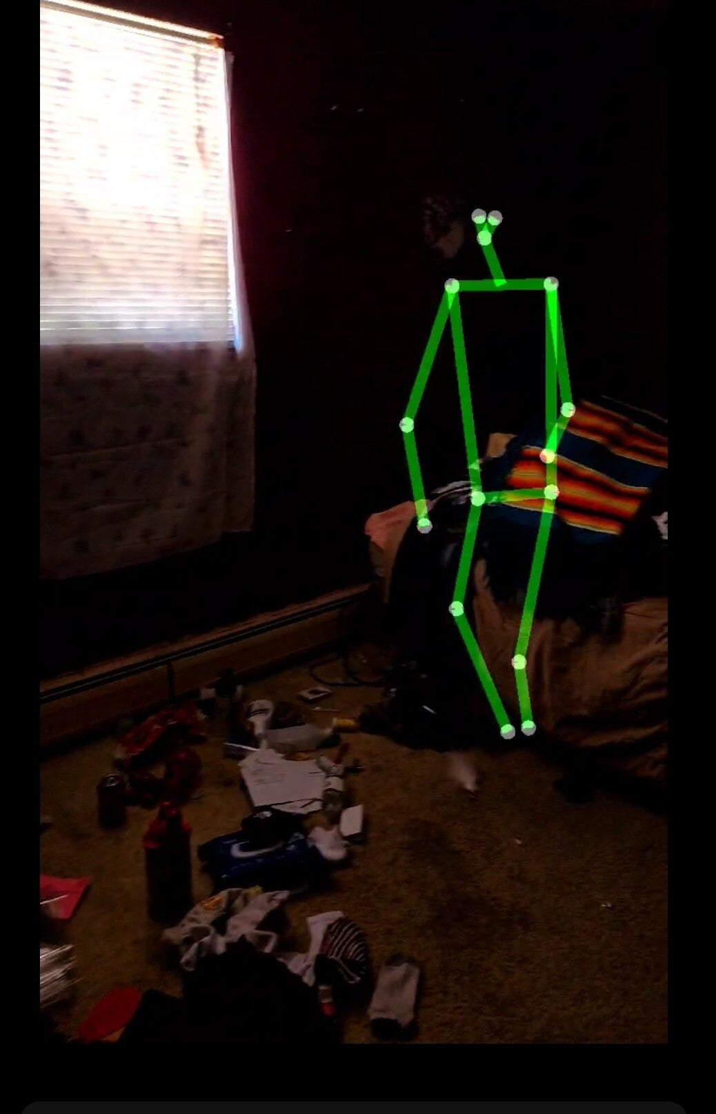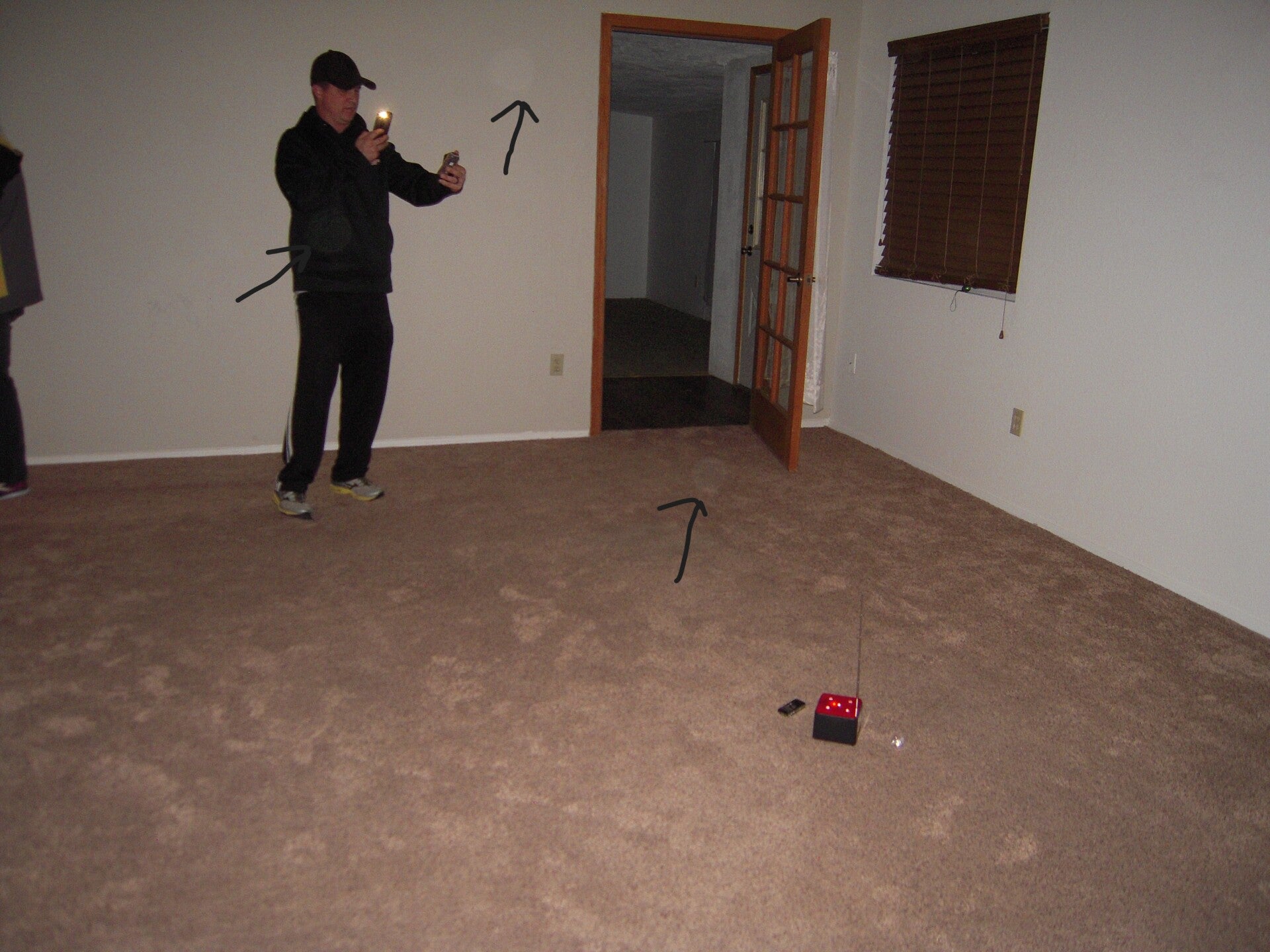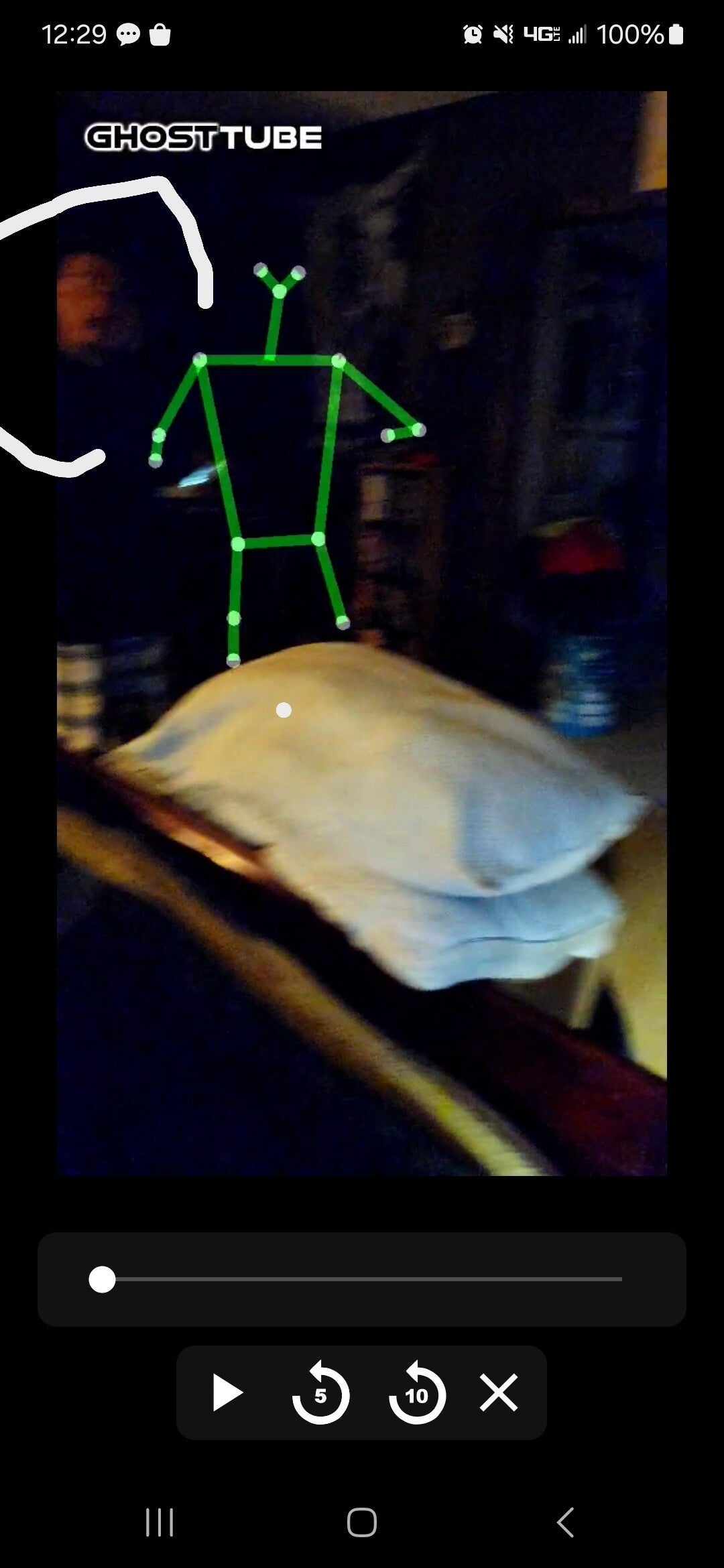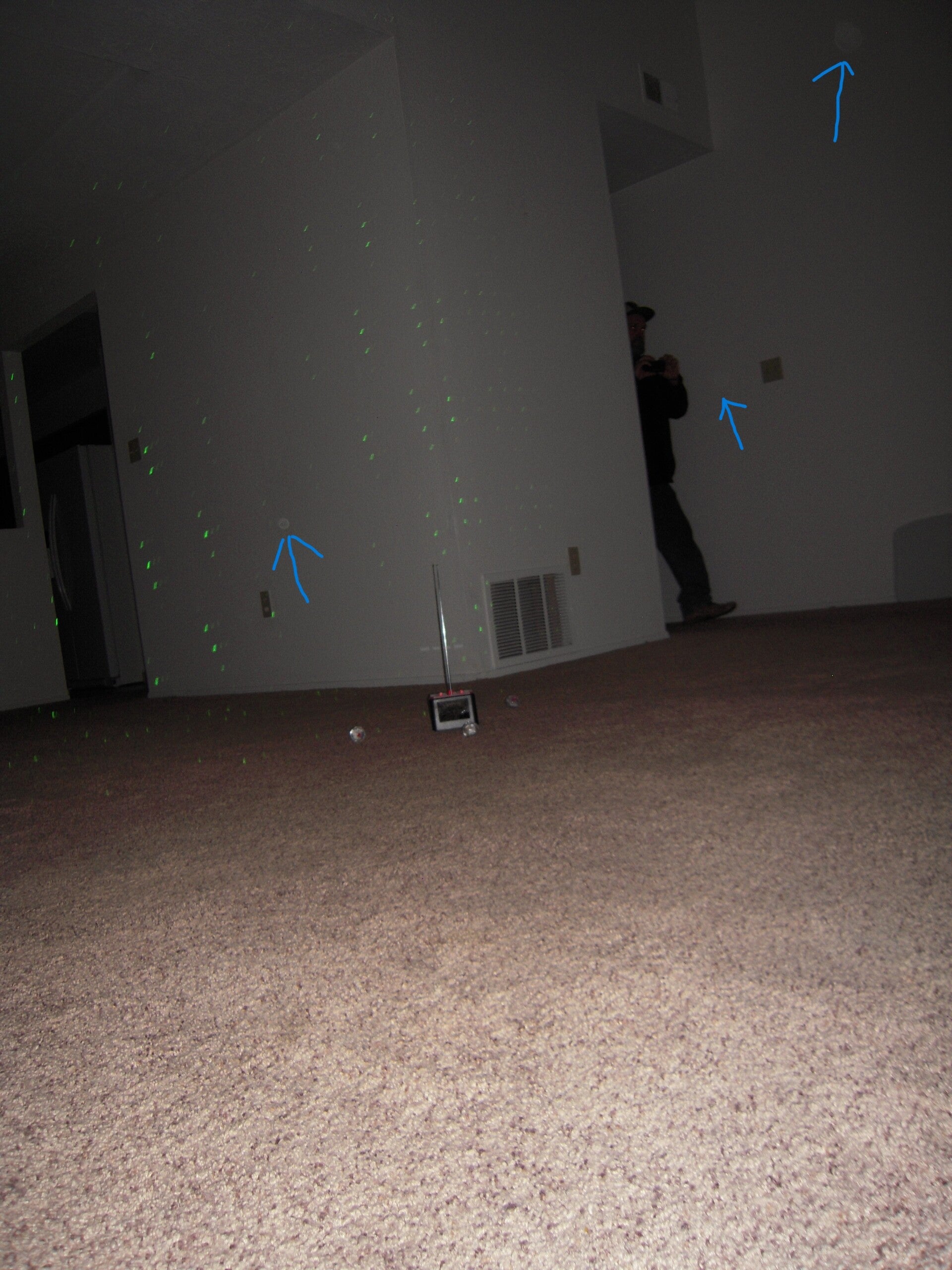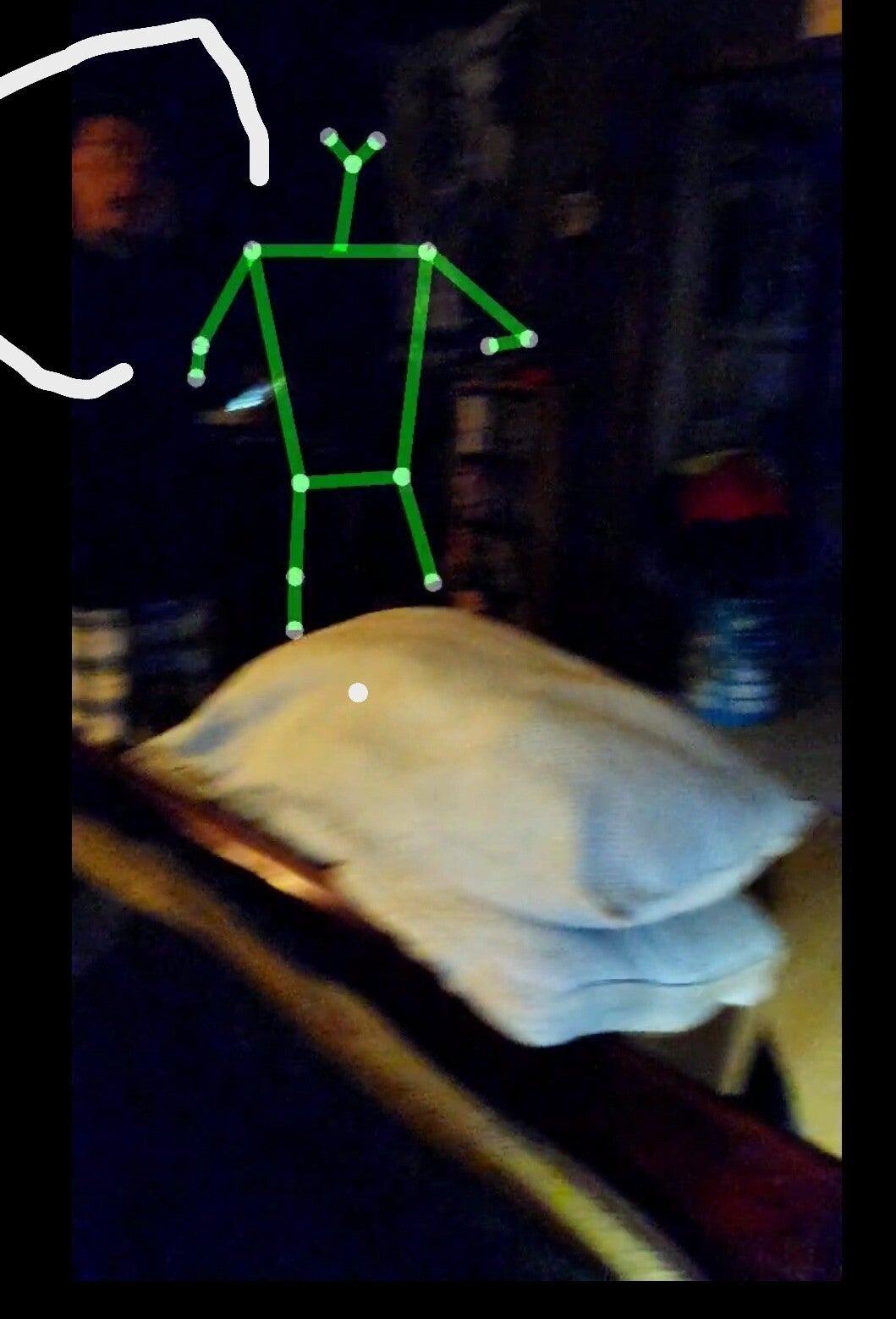 Picking up ORBs. Here you can see multiple SLS figures. As we were using the SLS we saw a face in the background of the SLS figure over the pillow.
